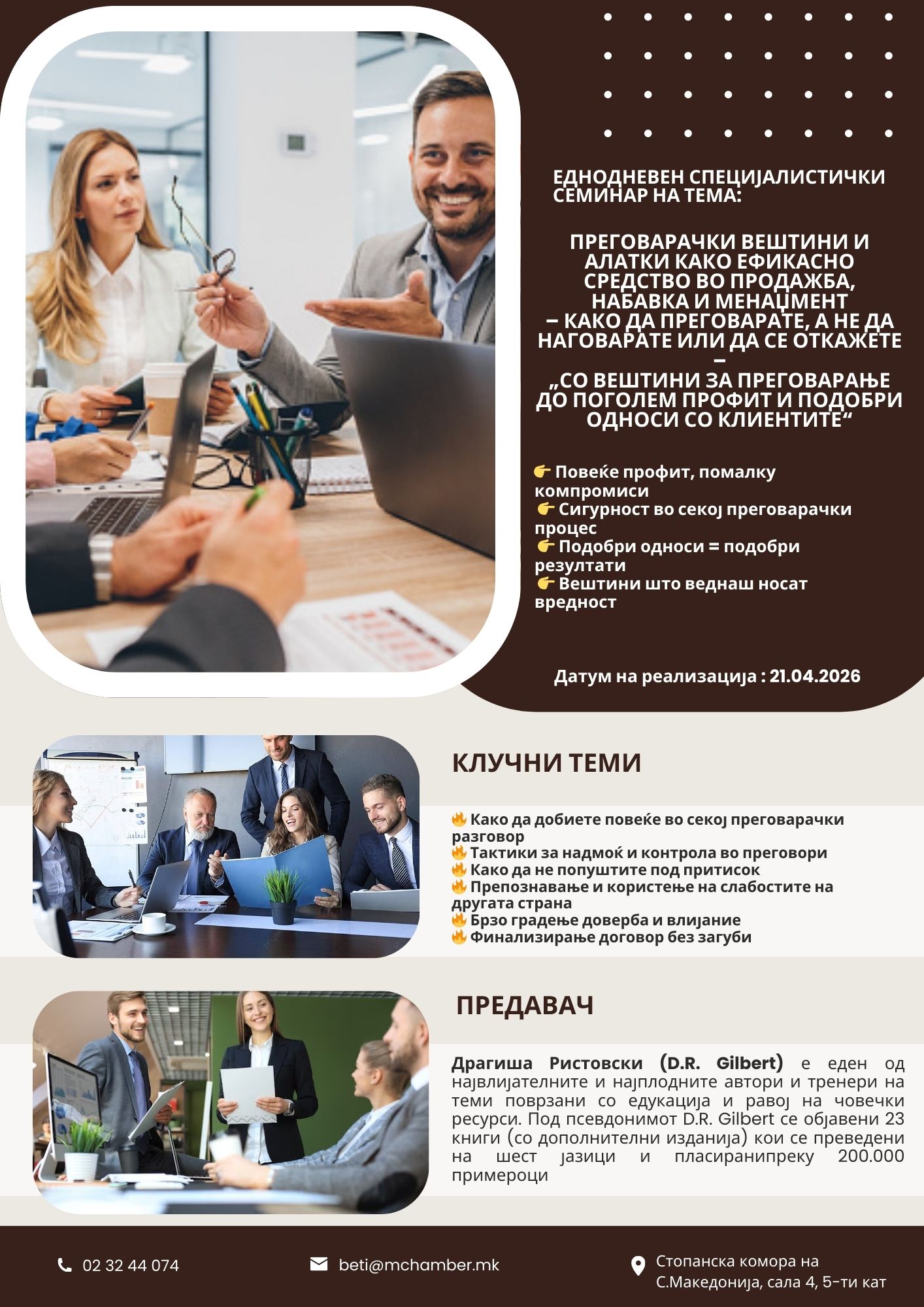 · сертификат за присуство на семинарот.