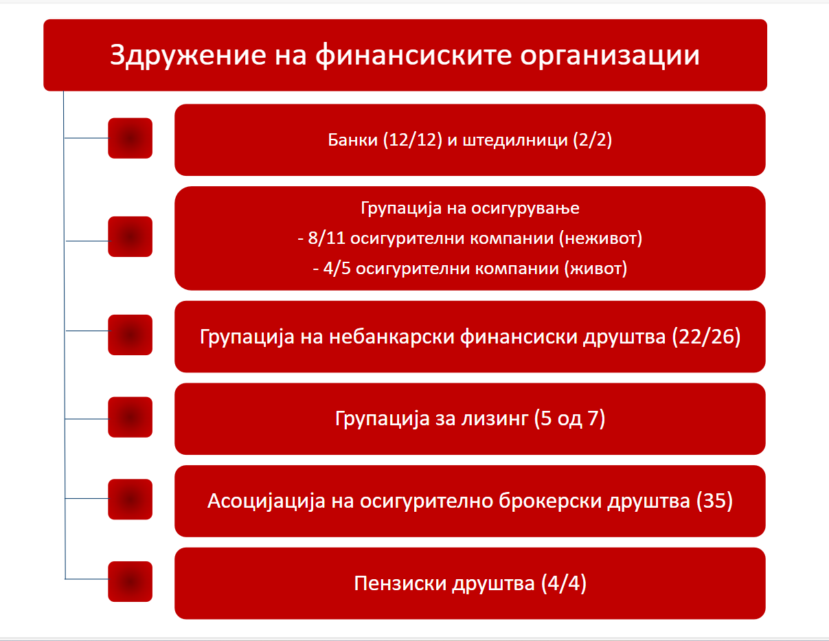 Здружението на финансиски организации е единствената форма на здружување во земјата што ги обединува сите учесници во финансискиот сектор – банки, штедилници, осигурителни друштва, друштва за управување со пензиски фондови, небанкарски финансиски институции и лизинг-компании – поттикнувајќи заеднички ангажман и долгорочна соработка преку олеснување на интерсекторските форми на партнерство.