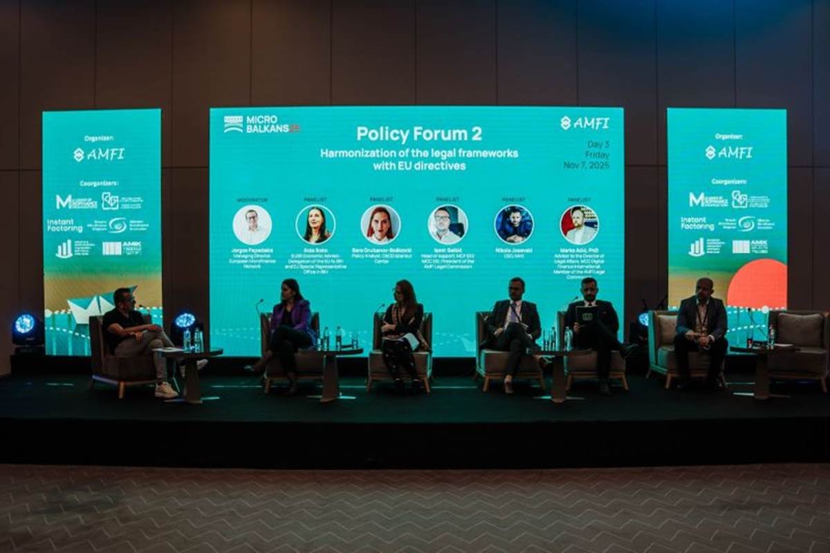 На регионална конференција Микробалканс 2025, што се одржа во Дубровник, Хрватска, од 5 до 7 ноември, панелот „Усогласување на правните рамки со директивите на ЕУ“ се фокусираше на регулаторната хармонизација, финансиската инклузија, платните системи и усогласувањето со процесот на пристапување кон ЕУ, со посебен акцент на улогата на микрофинансиските институции и финтек решенијата за одржлив развој и унапредување на регионалната соработка.