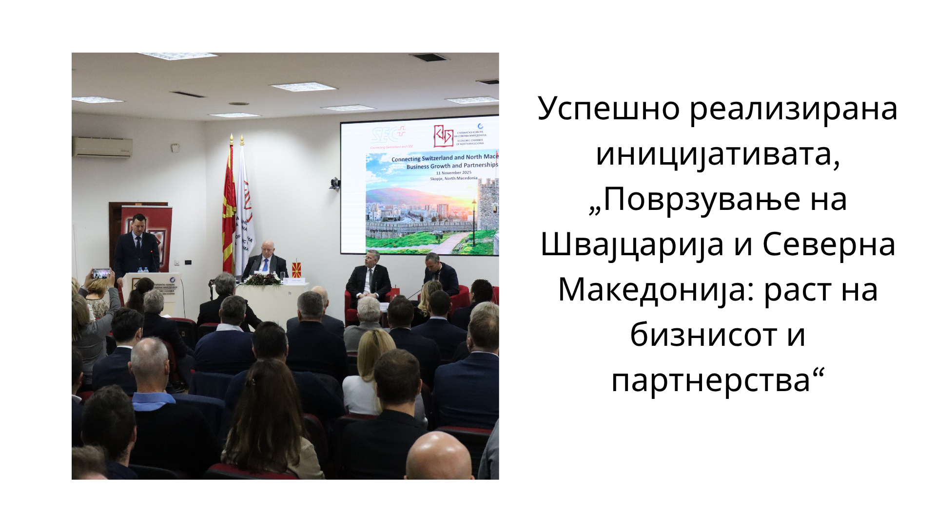 Минатата седмица, под мотото „Поврзување на Швајцарија и Северна Македонија: Деловен раст и партнерства“, во Стопанската комора се одржа деловен форум посветен на унапредување на трговијата, инвестициите и економската соработка меѓу двете земји. Настанот беше заеднички организиран од Стопанската комора на Северна Македонија и Стопанската комора на Швајцарија и Средна Европа (СЕЦ), со поддршка на Амбасадата на Швајцарија во Скопје.