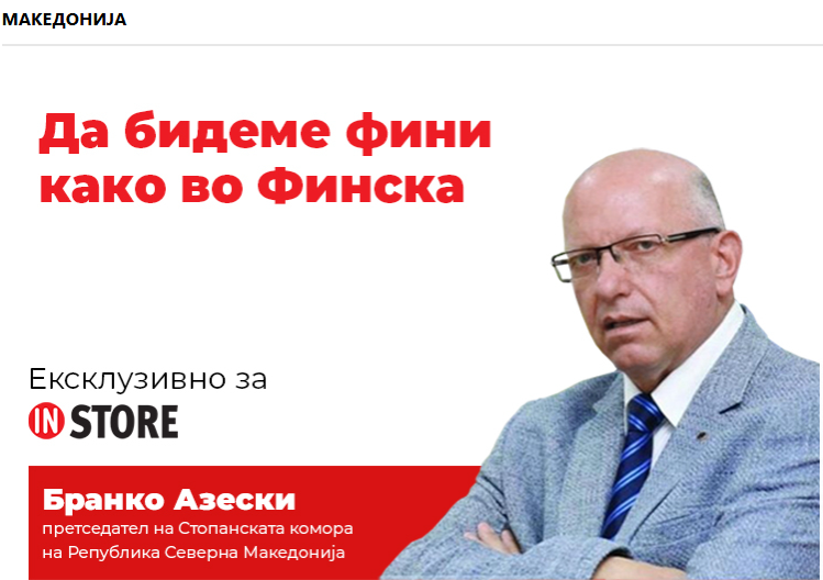 Во редовната колумна за магазинот InStore во изданието за месец ноември претседателот на Стопанската комора и генерален извршен директор на ГС1 Македонија, Бранко Азески, пишува за фактот дека, „во време кога глобалните синџири и меѓународните брендови се шират со невидена брзина, домашните компании имаат сериозна задача, во трговијата на мало да пласираат производи кои ќе ги стават во надредена положба над увезените производи, но не затоа што се домашни, туку да се докажат по квалитет и цена. Но, за да биде тоа навистина така, потребни се резултати на комбинација од доверба, свежина, културна блискост и економска логика. Во пазар исполнет со увозни алтернативи, македонскиот купувач треба да го препознава квалитетот на локалното и секојдневно да го потврдува тоа со својот избор.