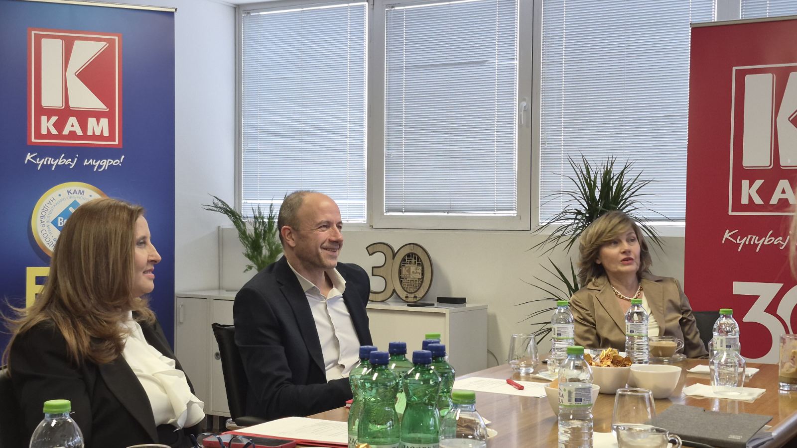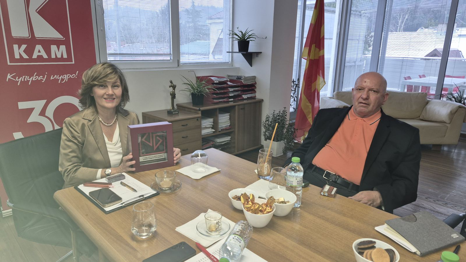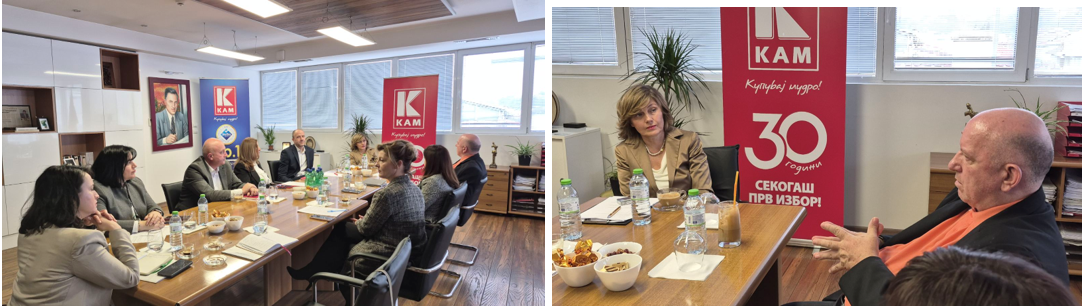 По повод три децени постоење и успешно работење, претседателот на Стопанската комора Бранко Азески оствари работна посета со менаџментот на КАМ. Предмет на разговори беа предизвиите на компанијата со кои се соочува, како една од водечките деловни субејкти во трговијата на мало, според повеќе показатели, број на вработени, инвестиции, промет, ниски маржи, освојување нови пазари надвор од државата и сл.